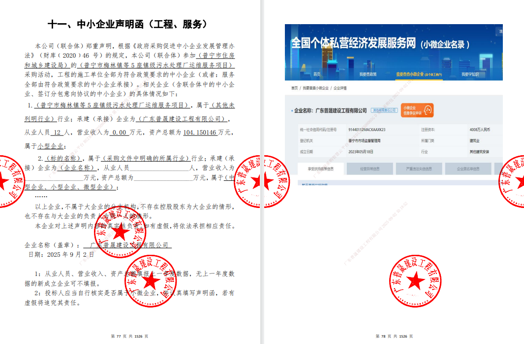 二、项目名称:普宁市梅林镇等5座镇级污水处理厂运维服务项目